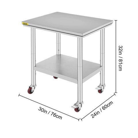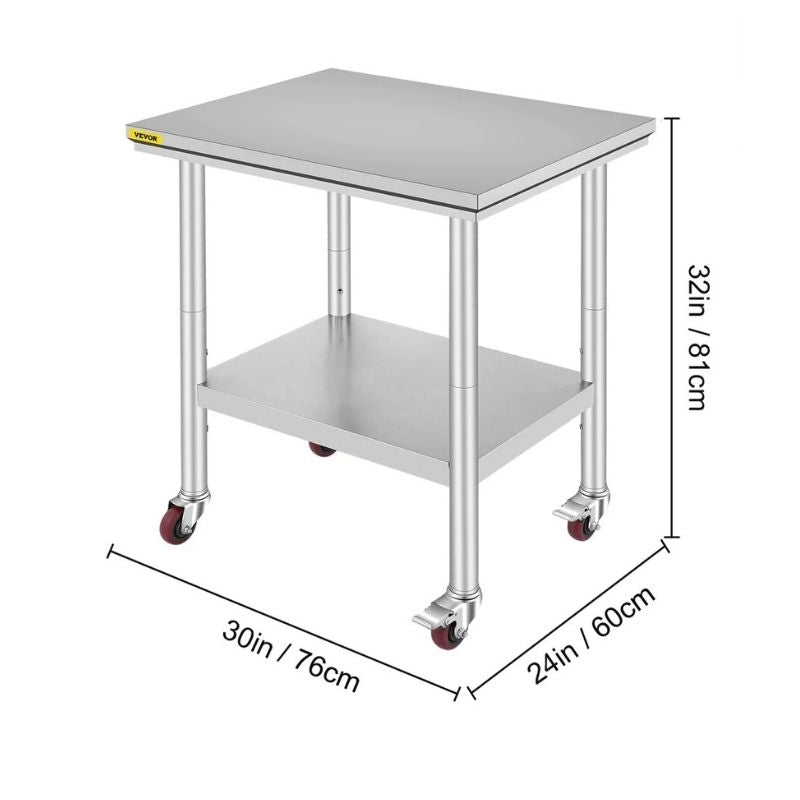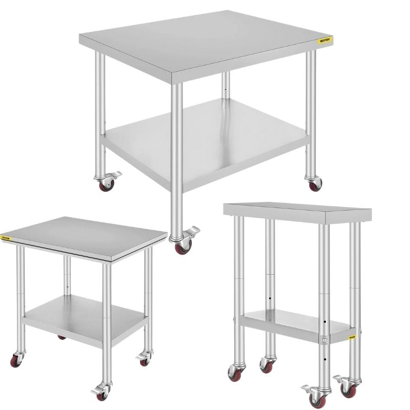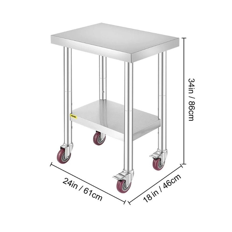 Table en acier inoxydable sur roulettes avec étagère réglable – ecoledepatisserie-boutique.com”