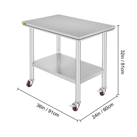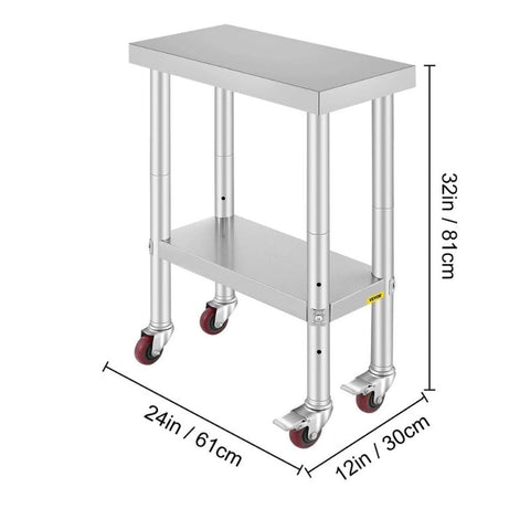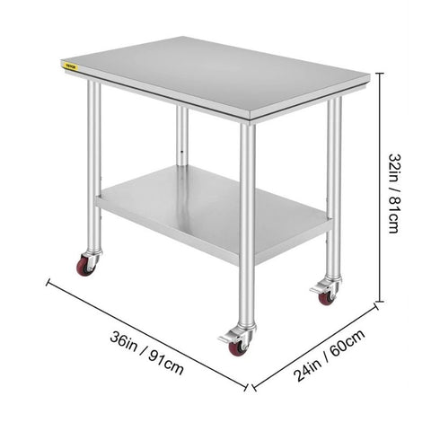 Table Inox Professionnelle sur Roulettes – Acier Inoxydable avec Étagère Réglable