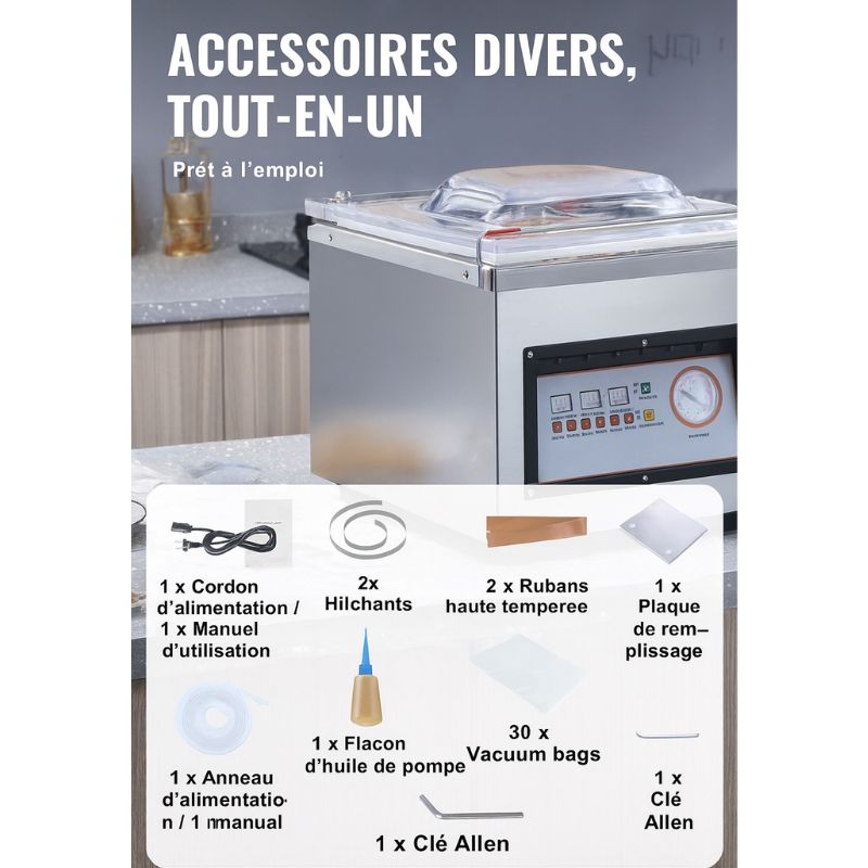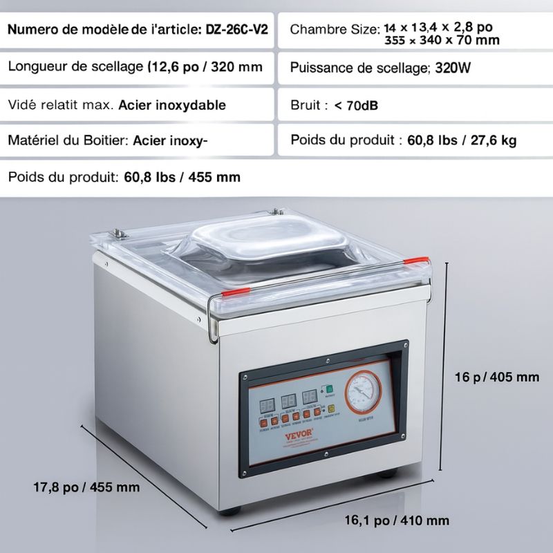 Que vous soyez artisan pâtissier, restaurateur ou passionné de cuisine, cette machine sous vide professionnelle à chambre est conçue pour répondre aux exigences les plus élevées.