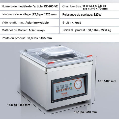 “Machine sous vide alimentaire professionnelle à chambre