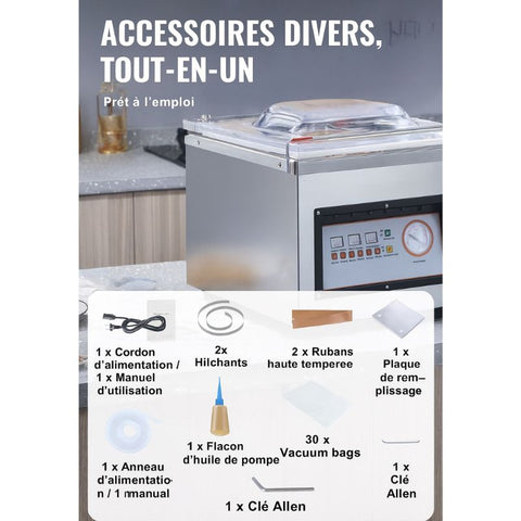 Utilisez uniquement des sacs compatibles chambre sous vide pour un résultat optimal.